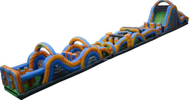 Get ready to ignite your inner adrenaline junkie on our colossal 95ft Inflatable Obstacle Course!